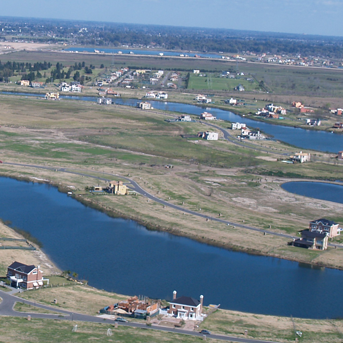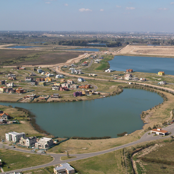 357 terrenos, de 900 metros cuadrados promedio, de los cuales el 25% están ubicados frente al río, el 60% con frente a lagunas y el 15% son terrestres.